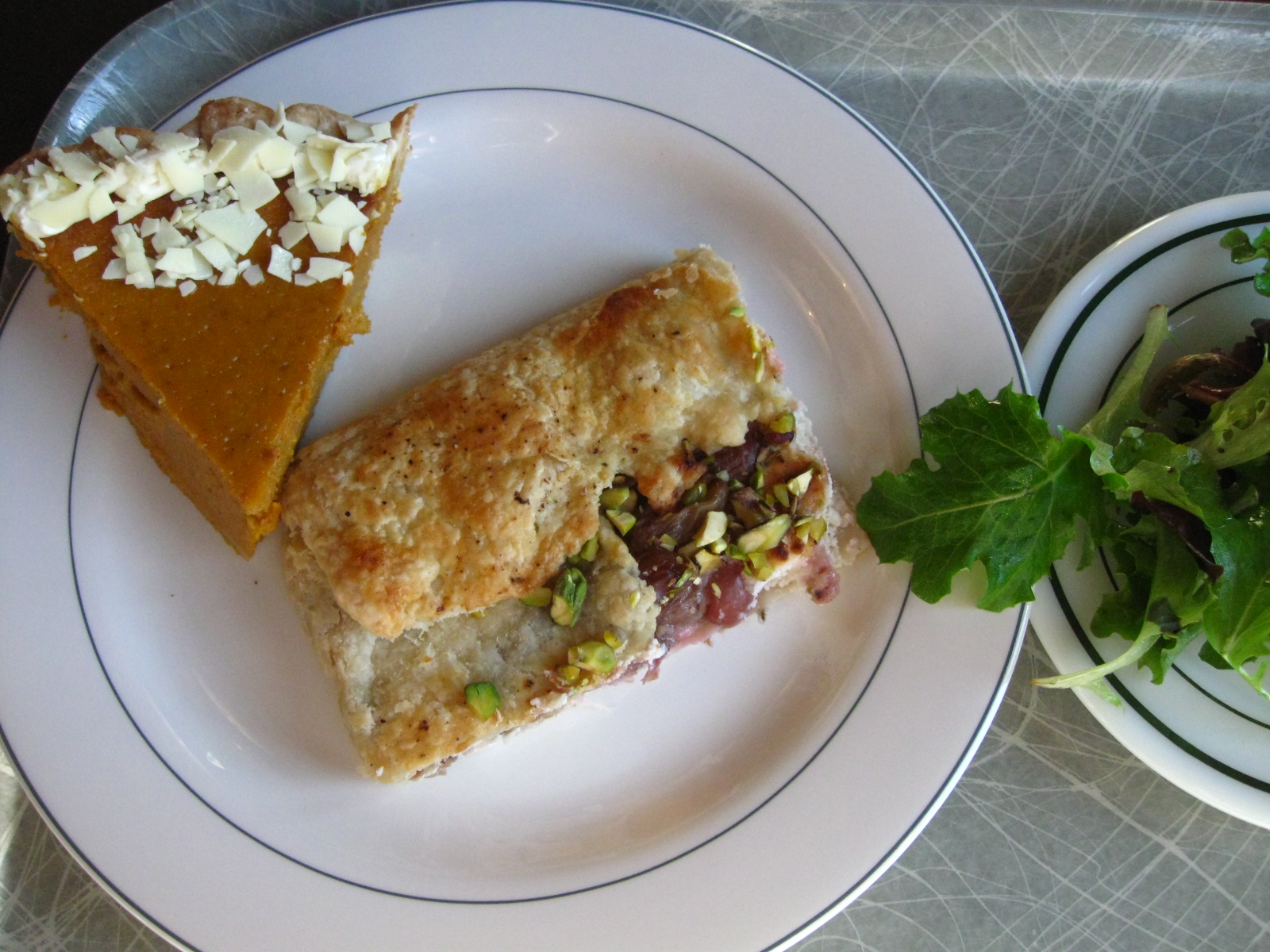 A hard-to-get ticket got you two slices of pie—one savory, one sweet—with an option of making it à la mode, a green salad and a beverage like hot tea, coffee or apple cider. With four seatings throughout the morning and early afternoon, choices were a crapshoot; only a few pies were available at a time. When it was my turn through the line, I opted for a piece of the rustic rosemary, grape and goat cheese tart from Humble and a slice of pumpkin from Graze. Both were tasty and quickly filling (my boyfriend was the lucky recipient of leftovers).