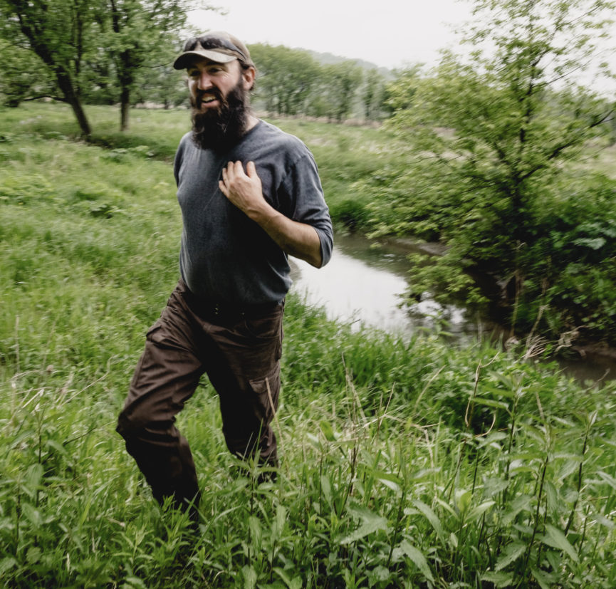 That means the pigs have a more complex gastrointestinal tract, so there is a greater difference between the live weight of a pig at Enos Farms and the amount of meat at slaughter. Yet the Crooks Lynches say they still come out way ahead environmentally because they have significantly fewer inputs. Most of the pigs’ time is spent roaming the wooded hills of Enos Farms foraging for whatever interests them. “We never have to worry about poison ivy around the farm,” Jeremy says. “Every time I let the pigs into a different section of the land, the first thing they do is munch the poison ivy to the ground. They absolutely love it, and have no reaction to the oil that irritates humans. And once the ivy is gone, they forage acorns, burdock, and all sorts of other things growing out there on their own.”