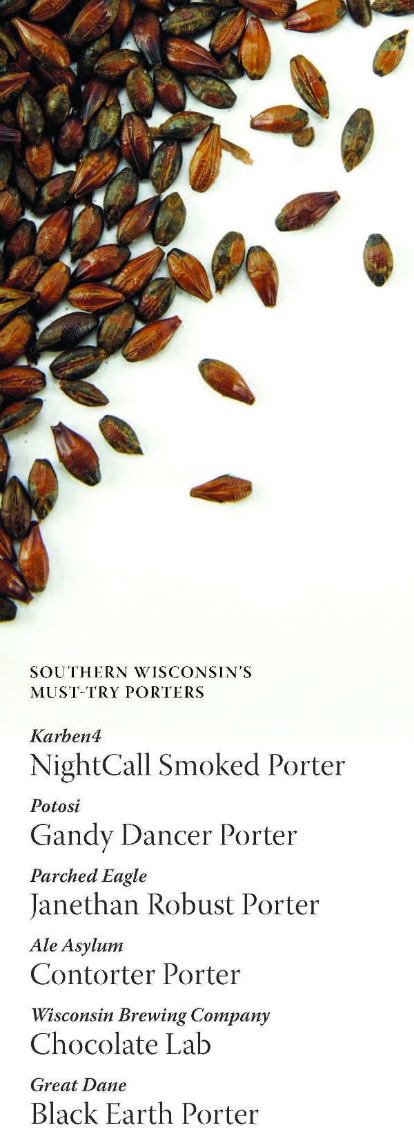 As any local beer nut will tell you, Wisconsin has a rich history of brewing lagers; in the 1830s, German immigrants began to recreate the classic beers of their homeland. Even though Wisconsin’s sudsy history is dominated by crisp and refreshing beer styles, the humble porter has carved out a special niche among craft beer enthusiasts around Southern Wisconsin. Today you’ll have a hard time finding a local brewery that doesn’t dabble in darker beers. (See sidebar for a list of the region’s must-drink porters!)