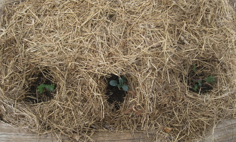 The day after onion planting I planted kale, broccoli and bok choy in my backyard garden. All of the beds are covered in hay mulch, so for planting seedlings I simply created some space in the hay and dug my hole for the seedling. My garden has had permanent beds and paths for many years, so over time I have noticed that many of the beds don’t require much soil prep at all before planting seedlings—because the soil is always kept covered, it doesn’t tend to compact as much as bare soil.