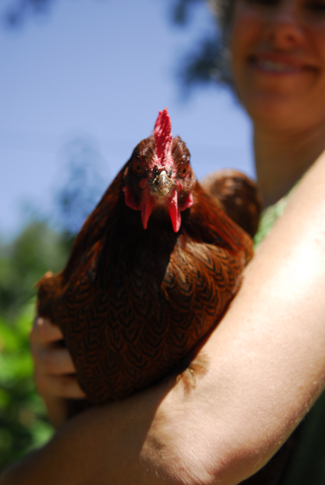 The couple’s home is a testament to urban growing—in addition to the chicken coop, they keep a large vegetable plot, bee hives, hops growing all around the sides of their house, and fruit trees, vines and bushes that yield cherries, grapes, raspberries, blackberries and nectarines. Instead of their neighbors complaining about the chickens, she says, they’ve moved their outdoor furniture a bit closer to the coop, so they can watch the antics of the birds. To Rheal, raising chickens is about nothing less than the natural cycle of birth and life and death. “Life means more than just the paycheck and the three-car garage,” she says. Rheal likes the do-it-yourself life. But she also advises that instead of ignoring the rules, people should work to change them.