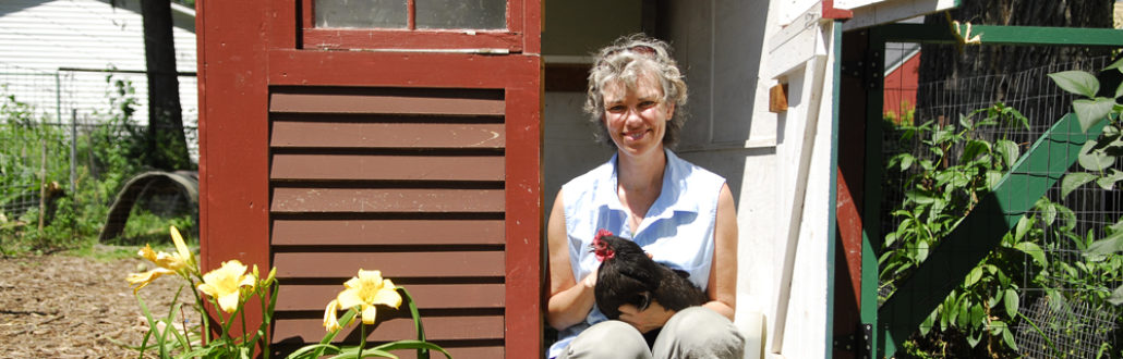 “The more we can do to eat locally and sustain ourselves is better for the earth,” says Gay Davidson-Zielske, who is raising her second flock in fifteen years on Gorham Street in a converted playhouse decorated with curtains and chicken-themed plates. “I’m very proud of my chickens,” she says, to whom she has given such names as “Michelle Obama’s Arms” and “Freida Lay.”