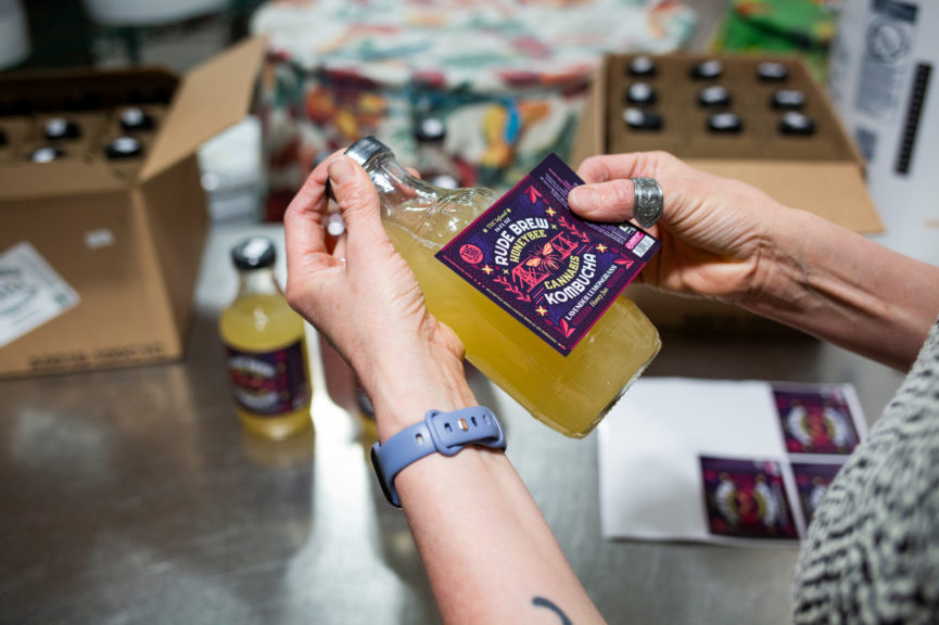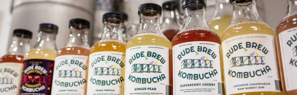 Rude Brew Kombucha has about a dozen flavors. Half are flagship flavors, which include Elderberry Cherry, Blueberry Basil and Reishi Root Beer, and the other half are seasonal flavors that rotate every two to three months. Rude also started a line of raw honey kombuchas, or juns, and THC-infused jun made from local honey, which have quickly become fan favorites.