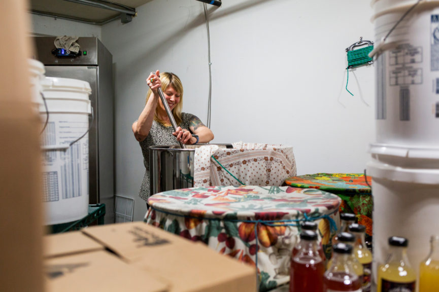 Rude produces 200 to 300 gallons per week of kombucha, a fermented beverage made with tea, sugar, and healthy yeasts and bacterias from a SCOBY (or symbiotic colony of bacteria and yeasts). Her hopes for the future in the new space include producing an additional 200 gallons per week, offering more brewing classes, hosting community events and adding additional flavors to her already robust lineup.