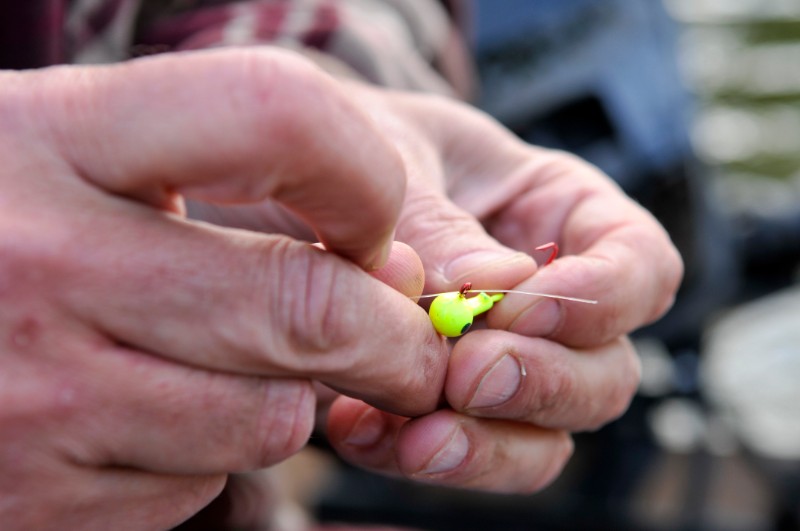 It’s clear that everything here is about food. The burger for a semi-toothed dude who has the day’s lunker walleye curled uncomfortably inside a 5-gallon bucket at his feet. Night crawlers for perch. Minnows for whatever’s hungry for them: northern pike and stripers today. Milk-Dud-sized purple jigs— fake food—for “eyes.” Chips, peanuts, jerky, and bag lunches are passed between wormy hands. Grilled cheese for the surprising, life-vested four-year-old whose walleye-seeking dad has left her to reel in the open-faced perch lines, which she ACTUALLY DOES, with perch flopping on the hook, all by herself, to the admiration of all and the glowing pride of her distant papa. And, of course, fish, the food we are all here for.