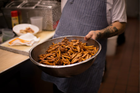 Since 2014, the SKC chefs have met monthly from June through January to taste and evaluate new and exciting vegetable varieties from plant breeders across the country. Sometimes, as with the chestnut-flavored squash (a variety called Stella Blue from Siskiyou Seeds), they strike gold. When local farmers learn about what chefs like, they can grow that variety the following season—turning that gold into fuel for the local food economy.