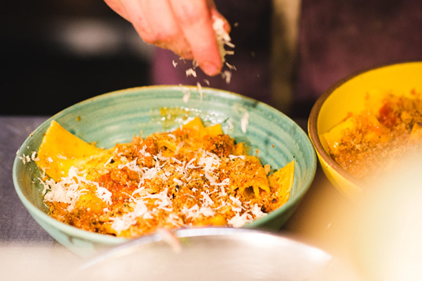 Working only with an outdoor oven and induction burners, the couple and their chef team have created a new dining experience that offers an array of dishes built on the bounty of nearby farms. The previous menu of pizza and salad has grown to include steaks, pasta, oysters, barbecue, crudo and brunch favorites.