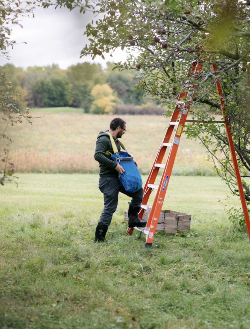 Orcharding is an historic agricultural tradition in Wisconsin, but with our inconsistent weather, growing apples in the state is a nuanced art. Even though an apple may be delicious, it can have imperfections that make it hard to sell by today’s standard of fruit beauty. Marie and Matt offer local orchards an outlet for their second-quality apples that would otherwise be a loss for the farm. Harvesting from over 25 orchards, including their own, the Raboins see the imperfection as a way to add depth to their small-batch ciders. The harvest from each orchard offers unique characteristics and varieties of apples. This diversity creates the opportunity to get creative with other ingredients the landscape has to offer to play off the flavor profile of each harvest. “I don’t know of many cideries that have been as experimental as we have. We’ve focused on locally sourced ingredients and we’ve made ciders with saskatoon, currants, elderberries, elderflowers, honey, maple syrup, tart cherries, plums, pears, seaberries, wild bergamot, chile peppers, pumpkin, black cherry, raspberry, black raspberry, blackberry, gin botanicals, basil, and I’m sure I’m forgetting some,” Matt says as he lists off the ways he and Marie have been creative with their cider-making over the years. “We couldn’t do this if we were trying to recreate the same cider each time.”