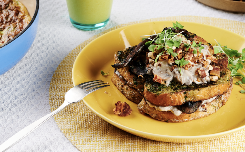 La Kitchenette owner Virginie Ok has been bringing French flavors to Madison since she opened the cafe on Willy Street in late 2016. Her savory French toast celebrates some of the best flavors of early spring. With fresh greens and herbs in the French toast batter and an earthy mushroom sauce covering each slice, you are sure to enjoy this elegant recipe.