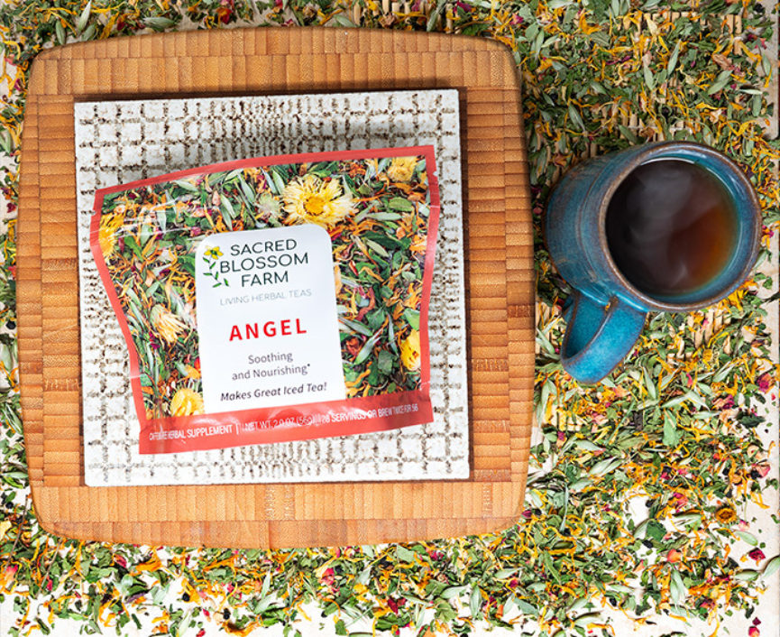 DiMaggio dove into herbs and herbal teas, learning through research and hands-on education. When it comes to creating tea blends, “it has to be functional, and it has to taste great,” DiMaggio says. “I have journals and journals full with tea recipes and iterations on these different flavors.” Angel Herbal Tea, one of Sacred Blossom Farm’s first offerings, took 350 iterations. It is a blend of mint, nettles, lemon balm and other flavorful herbs. It’s also the winner of the Chicago Tea Festival’s 2019 People’s Choice Award.