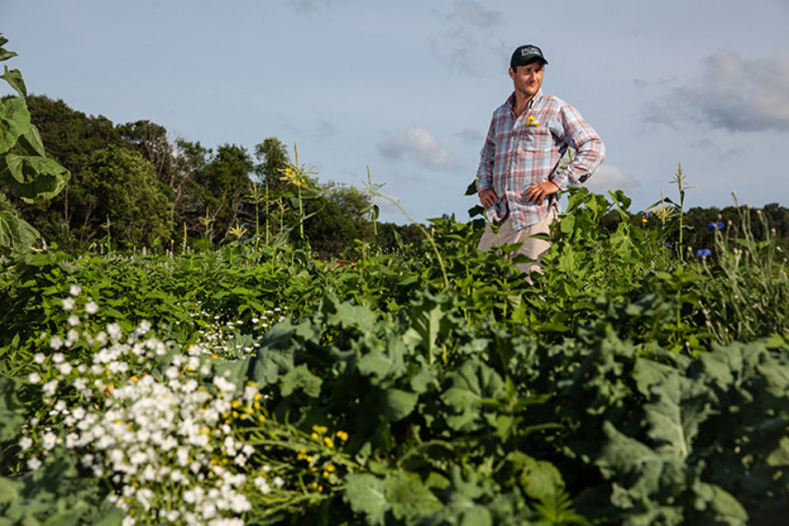 “We take fennel, which attracts so many different insects, and we scatter that all around the farm.” To increase winter ground cover, red clover is interseeded with tulsi, and winter oats are planted amongst perennial herbs. That winter ground cover builds soil organic matter and helps insulate perennials throughout the winter.