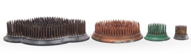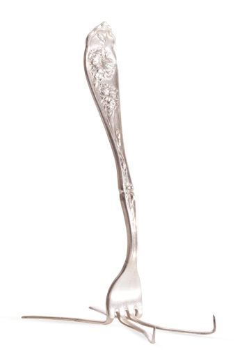 Signage: Sometimes signage is overlooked but your guests will be appreciative to know more about what they are eating. A La Crate rents a variety of chalkboards, slate pieces, wood and mirror surfaces so that you can present your menu, ingredients, where the food is sourced from and more (they also offer custom writing). Or maybe you have your own signage and you’d like a unique way to hold it up. Try using a holder like the Flower Frogs or bent fork stand below.