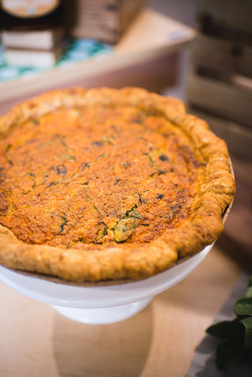 Mushroom & Arugula Quiche | Easy-to-heat quiche featuring wholegrain crust and local produce. | Pasture and Plenty | pastureandplenty.com