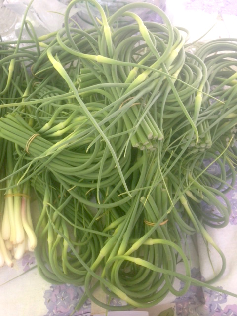 Garlic Scapes are the flower bud that forms on hard neck varieties of garlic and is removed in order to direct energy to the garlic bulb, causing it to thicken up. Don’t add scapes to the compost pile though—these castoffs are a tasty treat! With a slightly milder flavor than fully developed blubs, garlic scapes are great in pesto, sautéed with veggies or grilled whole in this dish of Grilled Garlic Scapes & Trout with Fresh Herbs.