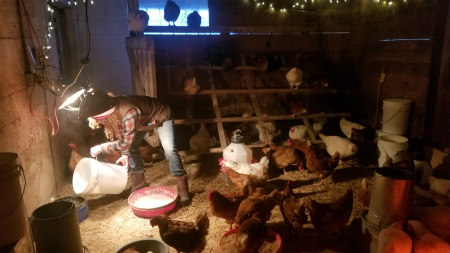 For many small, diversified farms, a year-round product supports other seasonal items. This is true for our farm. My commitment to high-quality eggs for our customers means that when the meat chicks and piglets arrive in the spring, we have the egg revenue to pay for organic feed as we wait for the coming grass pastures. Thus, the morning chores on my small Verona farm during winter months are not driven by the sunrise like my other farm seasons – it’s all about the hens. These layers are my only year-round farm animal. Their day starts at 4 a.m. when the light timer bulb in their winter barn signals that it’s morning and time to start laying.