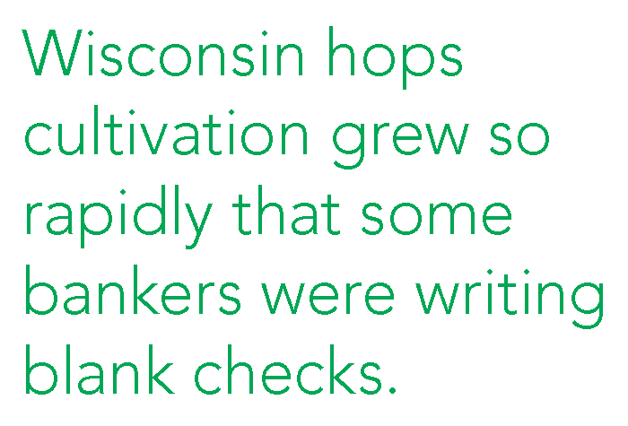 Centered in Sauk County, Wisconsin hops cultivation grew so rapidly that some bankers were writing blank checks. A secondary industry of how-to manuals rose up to meet the demand of prospective farmers, many of whom were planting the crop for the first time. At the peak of hops cultivation in 1867, Wisconsin farmers produced 11 million pounds of hops per year. Four million pounds of those hops came from Sauk County alone.