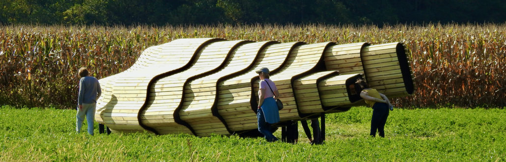 A pivotal moment in the organization’s history came in 2010 when Wormfarm hosted a traveling Smithsonian exhibit entitled “Key Ingredients: America by Food.” As Salinas and the other event planners thought about the region's eating habits and culinary practices, they decided to propose a celebration of fermented foods, including sauerkraut. Hitting the timing right as “the fermentation boon was beginning to crest,” the event was very successful, Salinas says. Although the traveling exhibit moved on, Wormfarm wanted to keep the momentum going in 2011 and Fermentation Fest, a multi-day celebration of all-things fermented, featuring classes and demonstrations, was born. In order to give the event more “heft,” Neuwirth and Salinas decided to add a farm-based fall art tour. “The idea of installing temporary artwork in fields is not a new idea but to create a tour around it is what we decided to do,” Salinas says. “We handpicked some artists we thought would understand the challenge and then we started talking to farmers who said, ‘Sure, you can put something in my hayfield in October; I’m done with it.’” Calling it the Farm/Art DTour, the event drew 4000 people in its first year. “First stop, first day, there were 20 cars parked along the side of the road and people were out in the farmer’s field engaging with this work,” Salinas says. “It’s grown from there. We have cultivated a lot of collaborations, both within and outside of our community.”